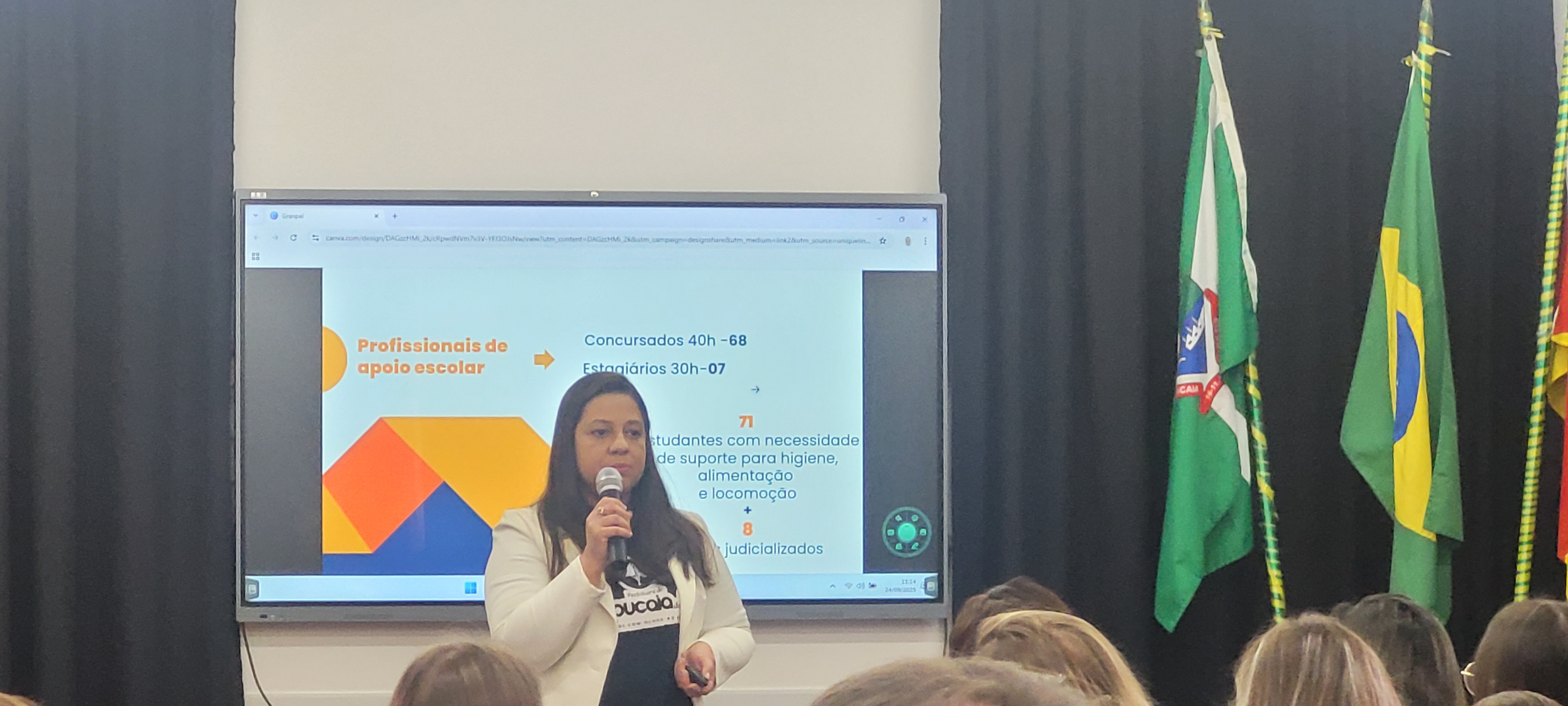 6. Formação da SMED na Fiergs: na noite de 03 de outubro, a Secretaria Municipal de Educação (SMED) promoveu um evento especial no Centro de Eventos da Fiergs, em Porto Alegre, reunindo todos os profissionais das instituições da rede pública municipal de ensino. A programação incluiu uma palestra da renomada professora Claudia Costin, que conduziu uma reflexão aprofundada sobre o processo de ensino-aprendizagem no cenário educacional contemporâneo. O evento contou ainda com a abertura da Orquestra de Metais e Percussão "Fé na Vida" e foi encerrado com um show cultural de Serginho Moah. Este encontro foi mais um momento de acolhimento, homenagem e valorização de todos os profissionais de educação.