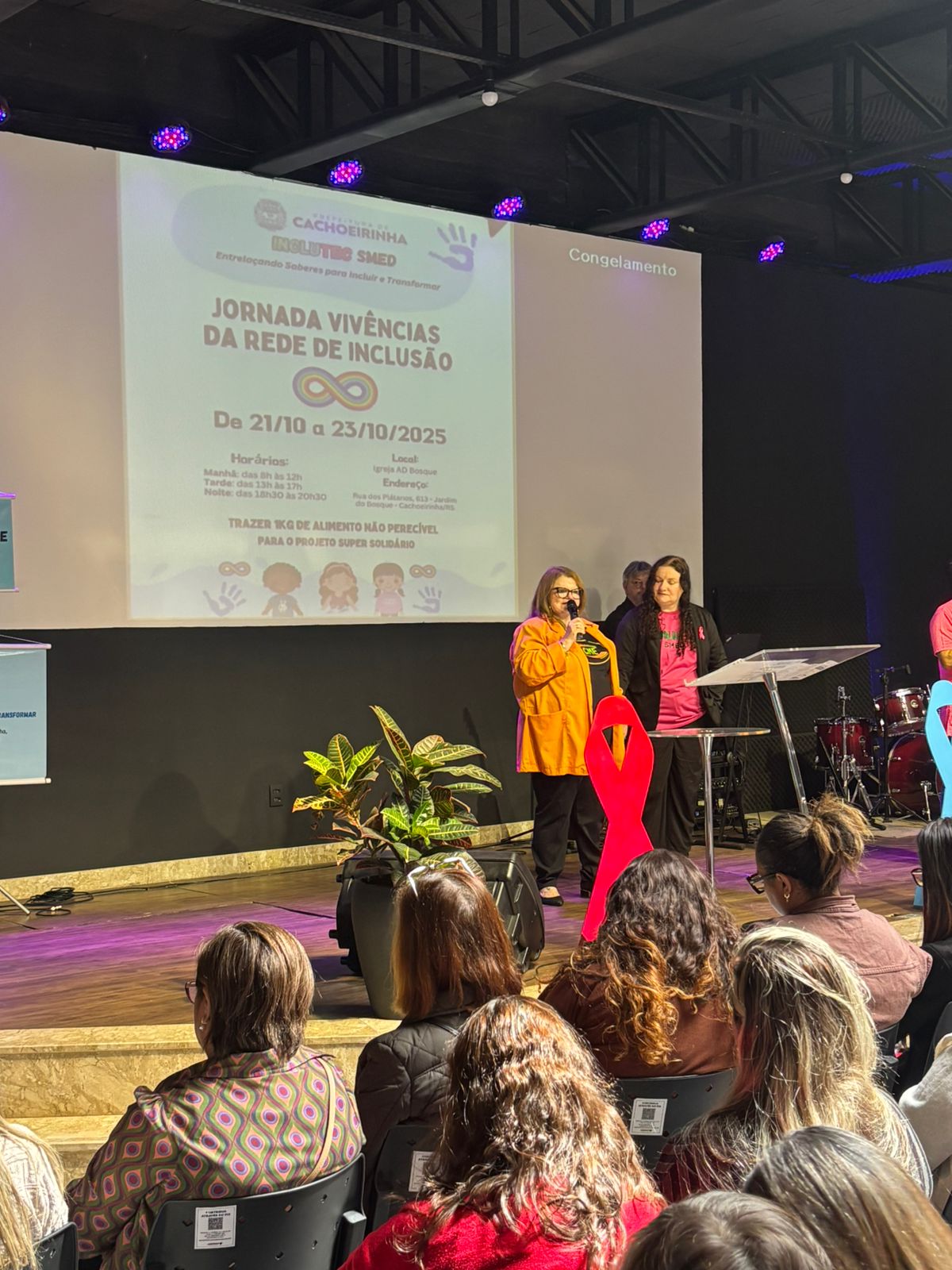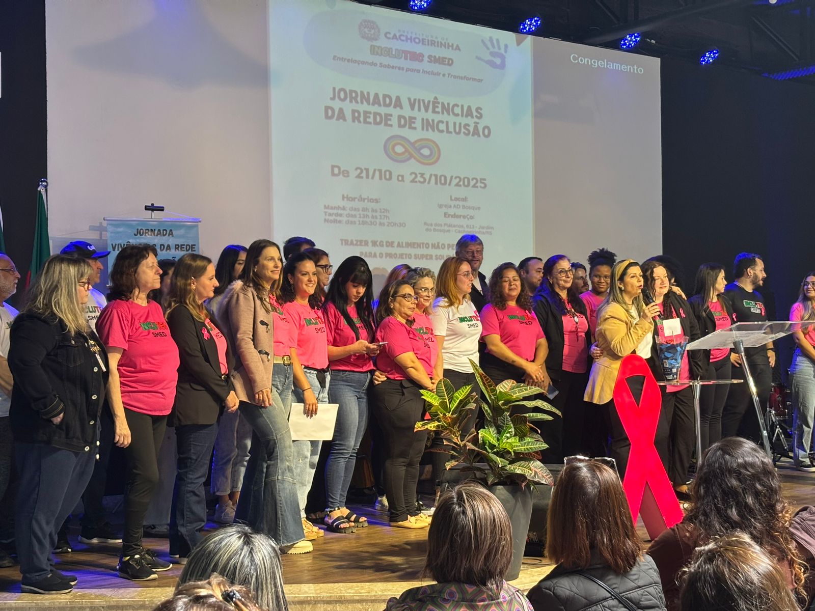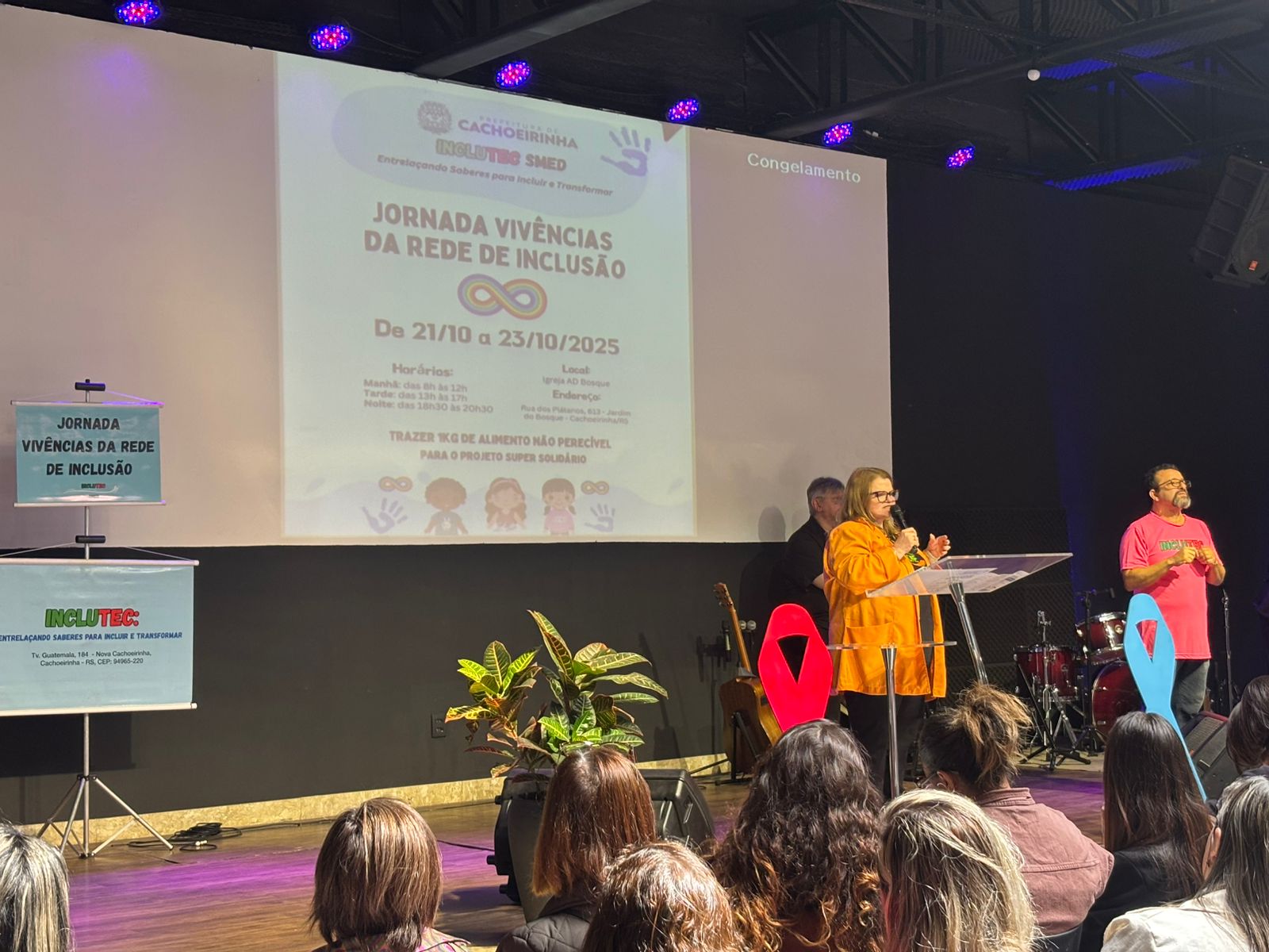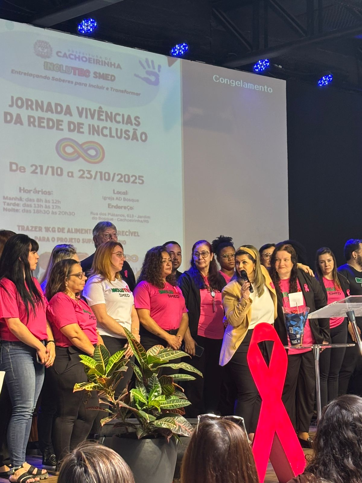 Na manhã do dia 21 de outubro, o Conselho Municipal de Educação (CME) prestigiou a Cerimônia de Abertura da "Jornada Vivências da Rede de Inclusão", evento organizado e realizado pela INCLUTEC na Igreja AD Bosque, com a presença de sua presidenta, Nara Maria da Silva Piasentin, e da assessora técnica, Ana Andréia Germann. O CME aproveita a oportunidade para manifestar total apoio à construção de uma sociedade inclusiva de fato e de direito. E, assim, parabeniza o trabalho de todos!