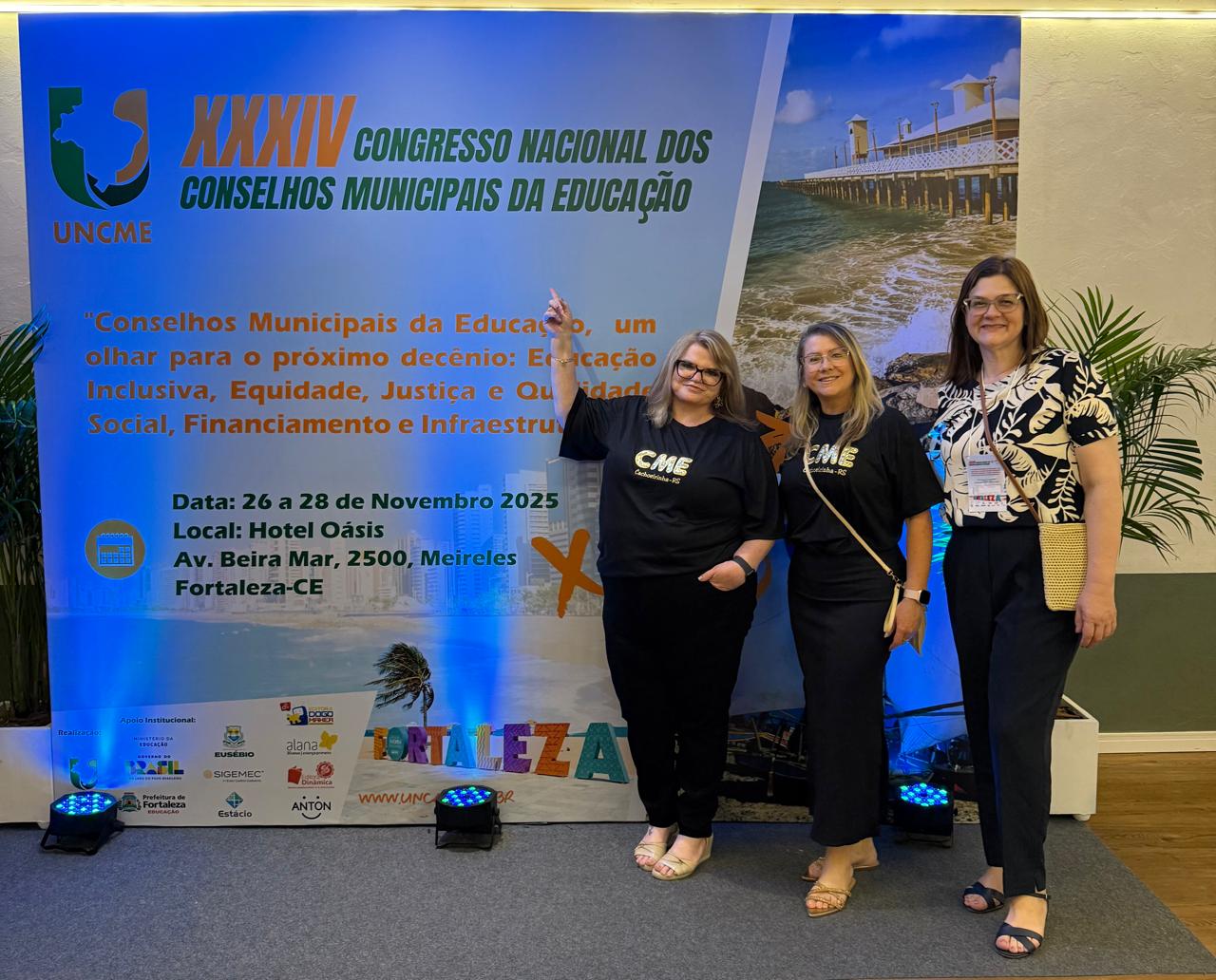 O CME-Cachoerinha participou do XXXIV Congresso Nacional de Conselhos Municipais de Educação (CMEs), realizado nos dias 26, 27 e 28 de novembro de 2025 em Fortaleza-CE, com a presença de sua presidenta Nara Maria Piasentin, da conselheira Alina Scheeren Tonon e da assessora técnica Ana Andréia Germann. Ressaltamos que este evento marcou um momento crucial de discussões sobre o futuro da educação brasileira e a defesa do direto educacional.