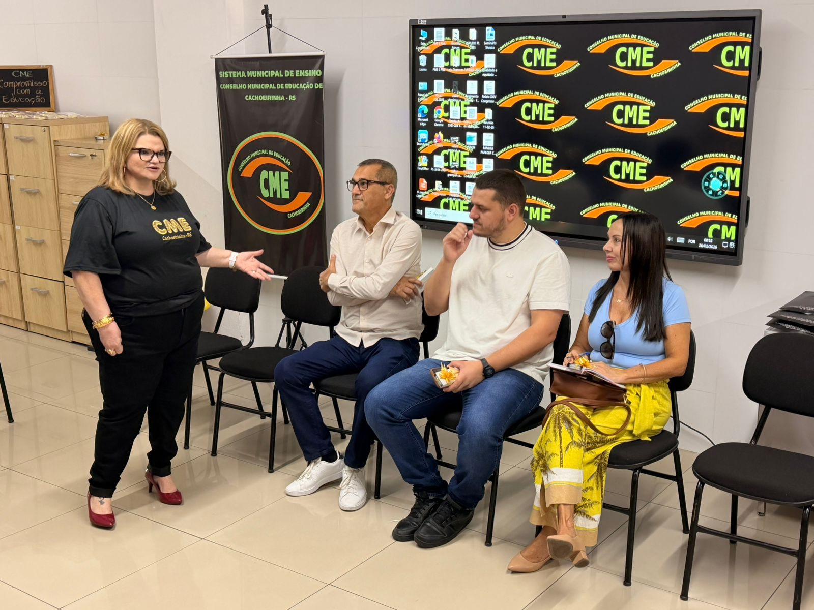 Na manhã do dia 26 de fevereiro, o Conselho Municipal de Educação (CME) de Cachoeirinha realizou, em sua sede, a primeira sessão ordinária do ano letivo. O encontro reuniu conselheiros e assessoria técnica com o objetivo central de apresentar e alinhar as diretrizes de trabalho que nortearão as atividades do Colegiado ao longo de 2026. Visando melhor alinhamento estratégico, a reunião contou com a participação dos representantes da Secretaria Municipal de Educação (SMED), reforçando o diálogo entre os órgãos: Sr. Ildo Júnior da Silva Júnior, Secretário Municipal de Educação, e assessores técnicos da Educação, Sr. Cláudio Luiz Pinheiro e Sra. Jacqueline Camargo dos Santos Ritter.
